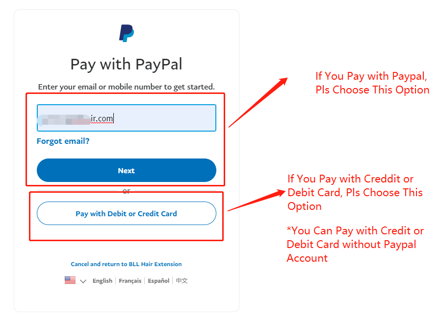 - Input Your Card information, after you complete payment successfully, you will receive one email quickly. If you couldn't complete your payment successfully, pls contact us freely:info@bllhair.com